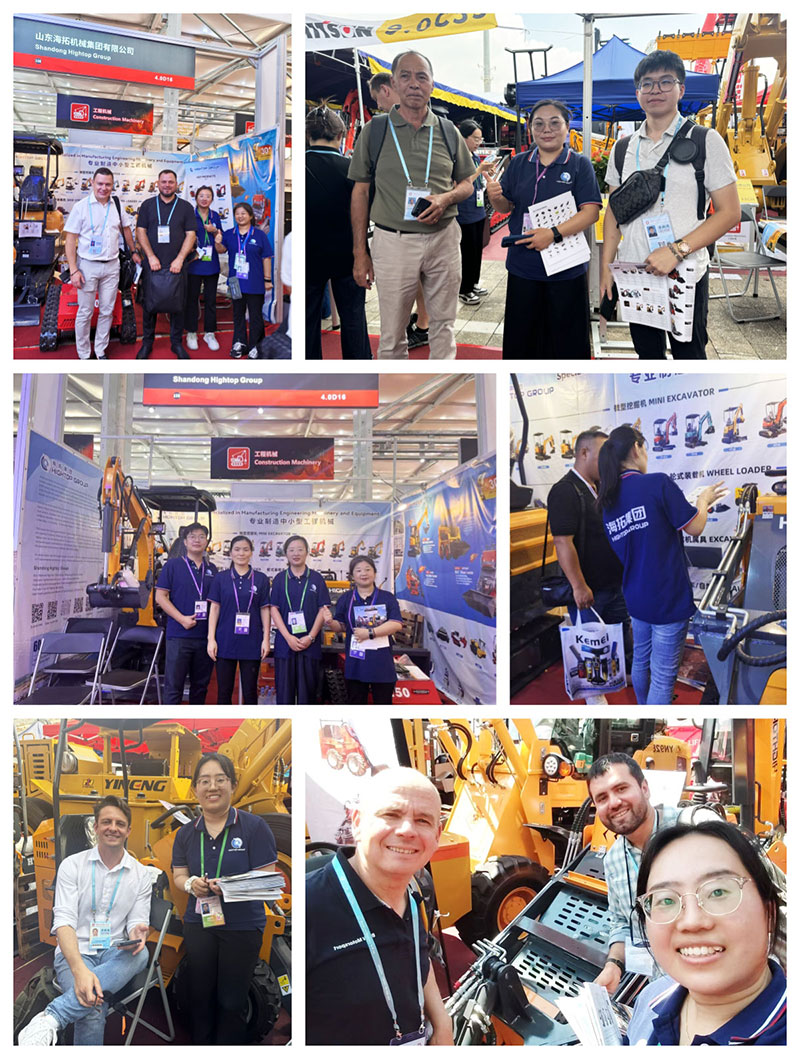 展會期間,海拓展臺精心設置的 “動態體驗區” 吸引了大量參觀者駐足互動,現場始終保持著較高的人氣。我們邀請客戶親自登上 HT系列小型挖掘機 與滑移裝載機,在模擬真實工況的體驗區內進行實操。眾多國際客商在親手操控后,對小型挖掘機在狹窄空間的靈活轉身贊不絕口,而滑移裝載機快速更換屬具的“變形金剛”能力,更是在動態演示中將其“一機多用”的優勢展現得非常全面。