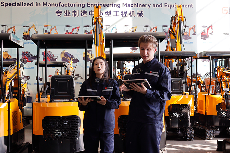 直播鏡頭深入焊接車間、下料車間、成品車間等核心區域,多方位展示海拓從原材料到成品的完整生產鏈條。在設備演示環節,技術人員現場操作挖掘機等主力設備,通過實地作業直觀展現其杰出性能。