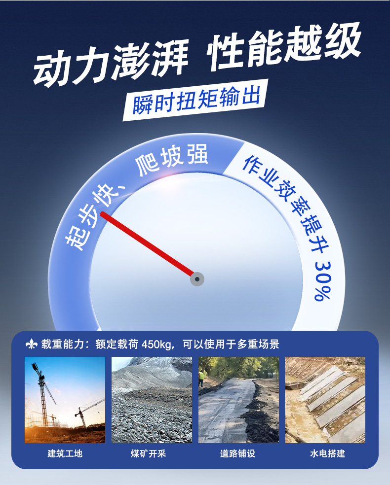 瞬時扭矩輸出:起步快、爬坡強,作業效率提升 30%