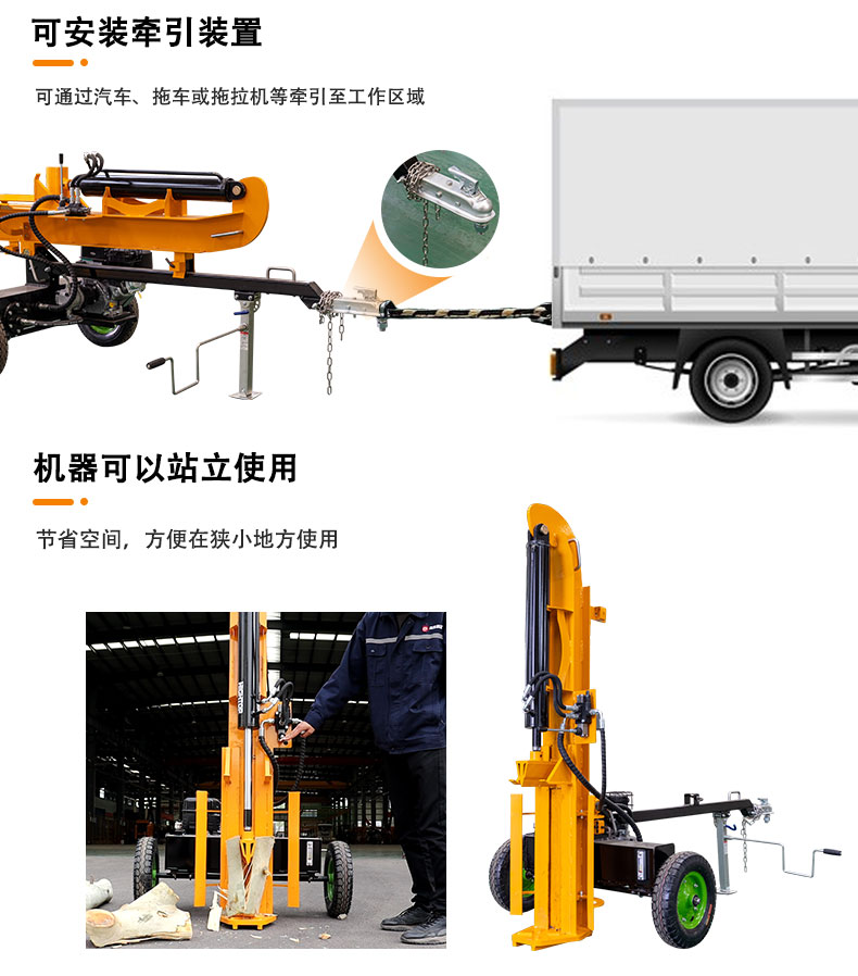 可安裝拖車裝置,可由汽車拖車或拖拉機等車輛拖到工作區