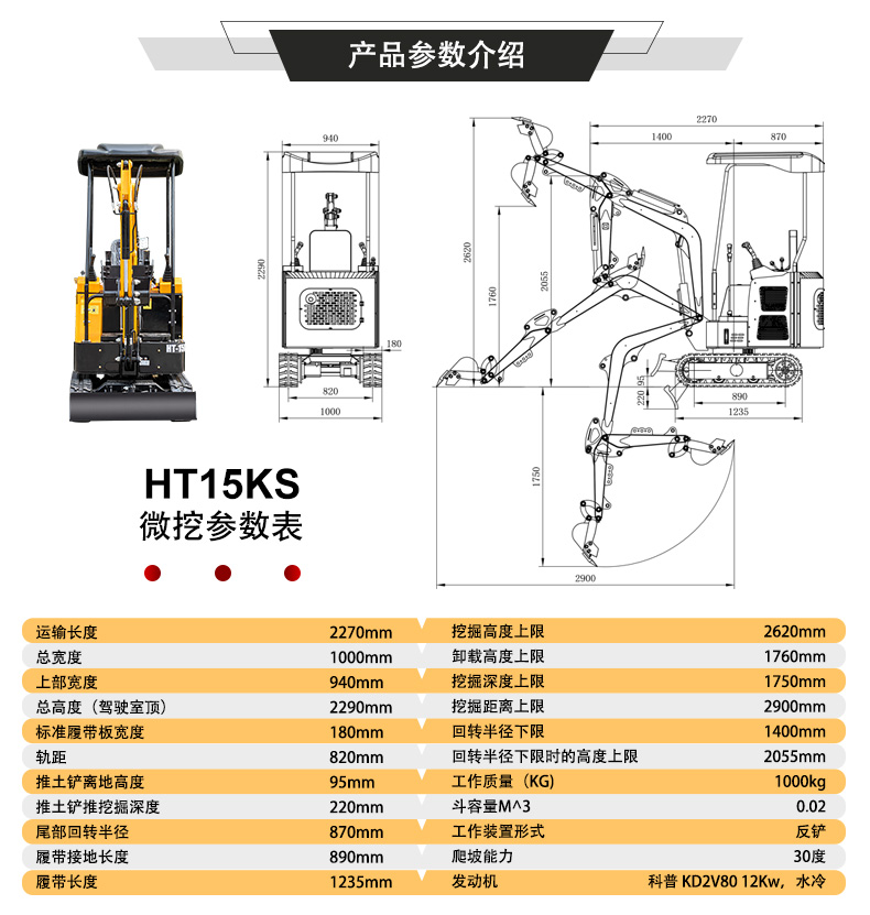 HT15KS 小型挖掘機參數