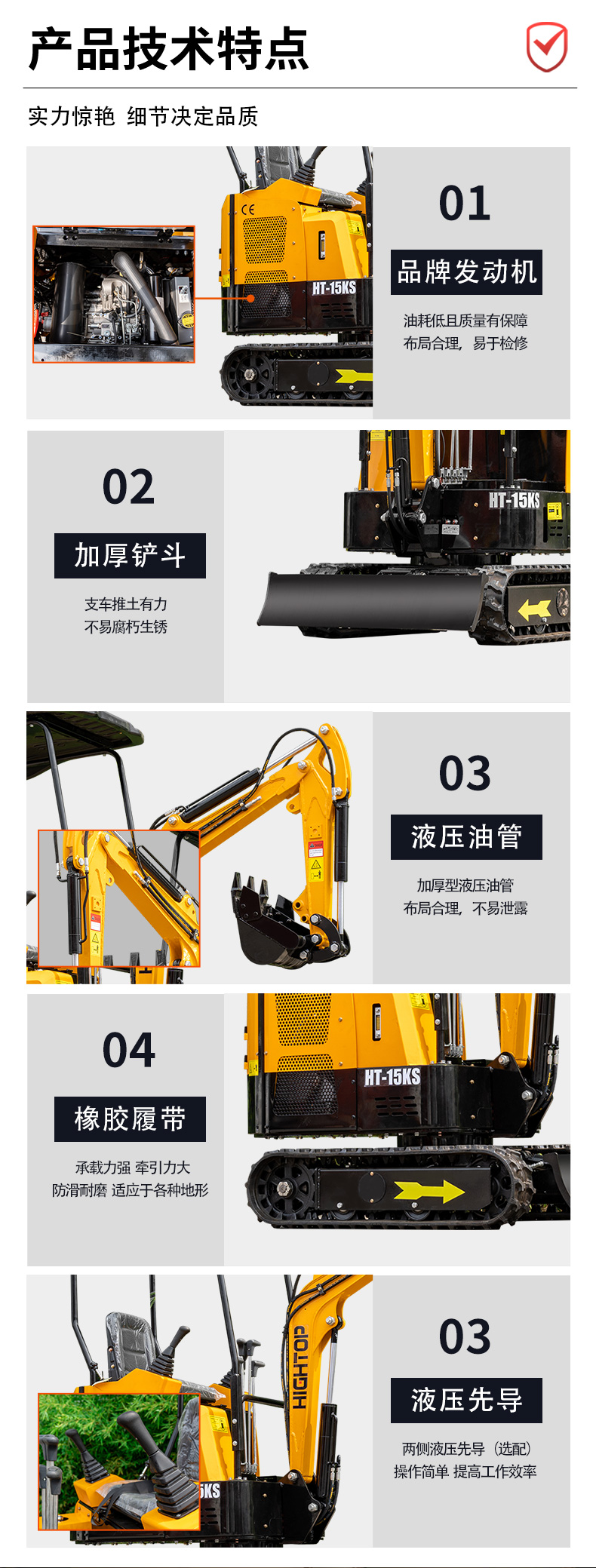 主要零部件選用可靠產品,發動機為科普 KD2V80,主閥為騰飛,為整機的穩定運行提供了有力保障。無論是小型工程施工、庭院改造還是農業作業,HT15KS 微型挖掘機都能憑借其靈活高效的特點,成為得力助手。